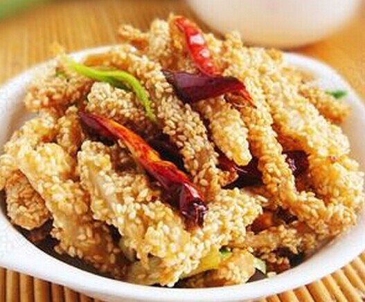 9入藕条,再加少盐炒匀,最后加入少量香油、花椒油翻炒片刻即可。